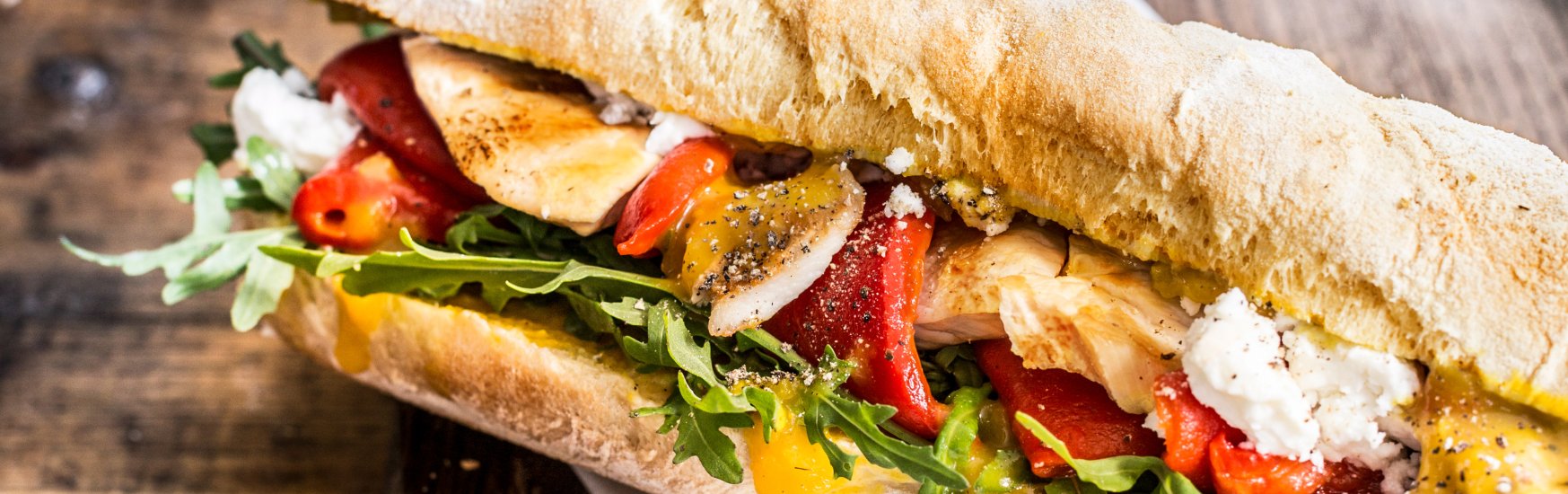 Dieses Sandwich kombiniert zart gegrilltes Chicken mit frischen, mediterranen Akzenten- ideal für die schnelle Mittagspause, als To-Go-Option oder als hochwertiger Snack. Rucola, Feta und geröstete Aromen bringen Abwechslung in die Karte und sprechen gesundheitsbewusste Gäste ebenso an wie Streetfood-Fans.