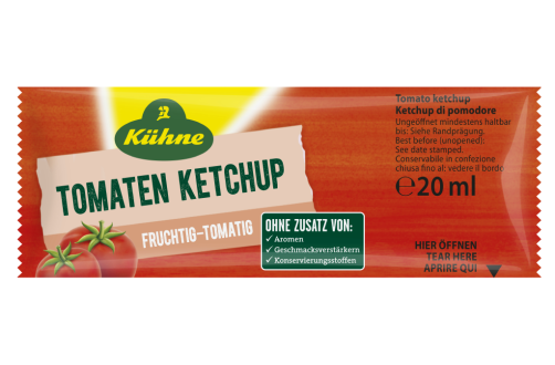 The ketchup in 20 ml portion sachets impresses with its sweet, fruity, spicy flavor and a slightly sour note. The balanced recipe ensures a well-rounded flavor that is ideal for enhancing a wide variety of dishes – whether with French fries, burgers, meat or vegetarian dishes. Thanks to the practical single-serving size, the ketchup is hygienic, easy to open and perfect for use in takeaway offerings, canteens, snack bars and professional communal catering.